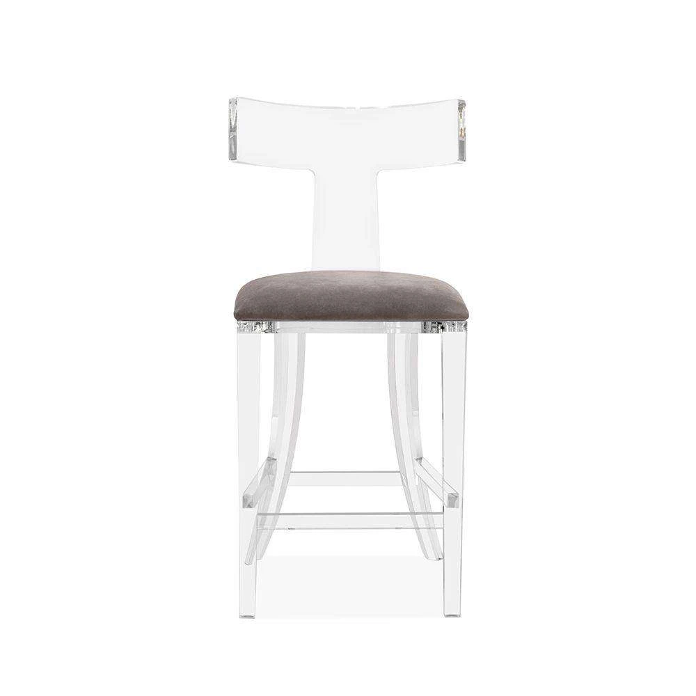 Pairing on-trend acrylic with a grey velvet seat, the Tristan Klismos Counter Stool delivers a fabulous take on a classic silhouette.