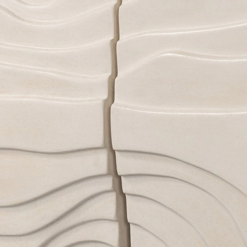 This three-part wall panel in dimensional plasterwork adds visual interest to any space. The finished trio marries cascading terraces of varying depths for a finished piece that catches light well throughout the day.