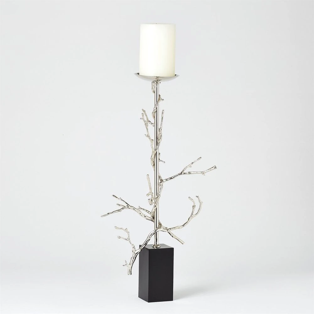 The twig decoration on these elegant candle holders are cast from real branches and expertly finished and polished by metal work artisans. Their scale and impact is stunning, and they made a perfect complement to our beautiful twig collection.