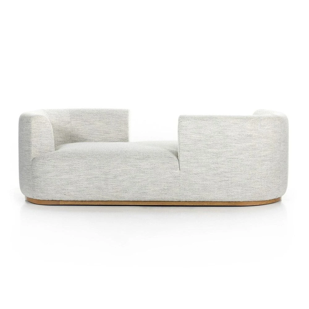 - Description: Modern European inspiration and plush curves come head to head in this stylish chaise. Upholstered in our soft liquid-repellent performance fabric that feels both casual and elevated. A rich base of Rosa Morada wood below frames the entire piece.