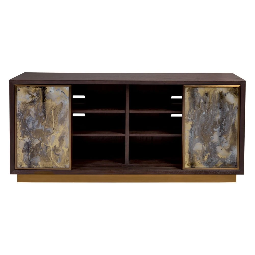 Marketing Copy: Original designs in Verbatim celebrate a Vintage Modern aesthetic, blending architectural forms with artisanal detailing. Crafted from wire-brushed White Oak veneers in a rich brown finish with a deep umber glaze that accentuates grain lines, silhouettes in the collection include dining, occasional and media designs.