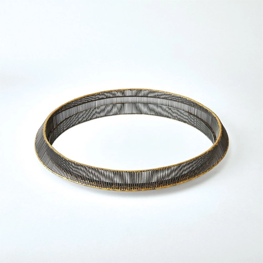 Description: Handcrafted from natural iron, the Whipped Wire Trays feature brass braising along the edges and a reflective mirror center. Versatile in design, these trays can also be mounted as wall mirrors, making a striking statement in any space.