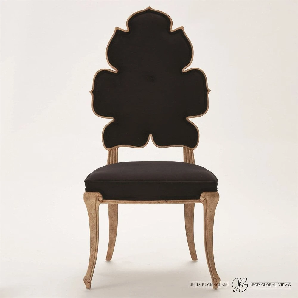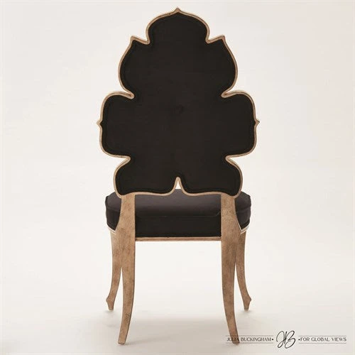 Wow, she’s a curvy girl! Miss Wiggle has more personality than any other armless accent chair out there. With her regal lines and distinctive silhouette the Wiggle Chair is destined to become an icon, in a class all her own. Available in Julia’s signature multi-colored “Raindrop” Fabric, Black micro-velvet and muslin- for your own signature Wiggle!
