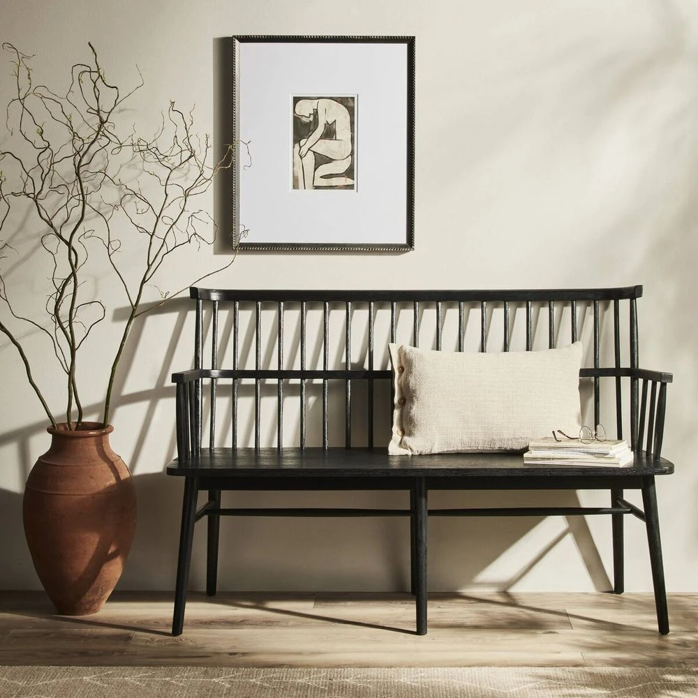 A fresh, forward-thinking take on Windsor-style seating, with a sculptural silhouette and matte black finish to play up parawood’s natural luster.