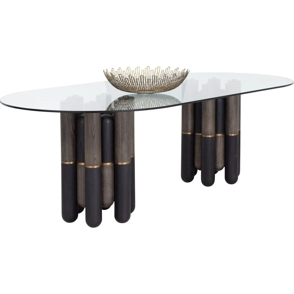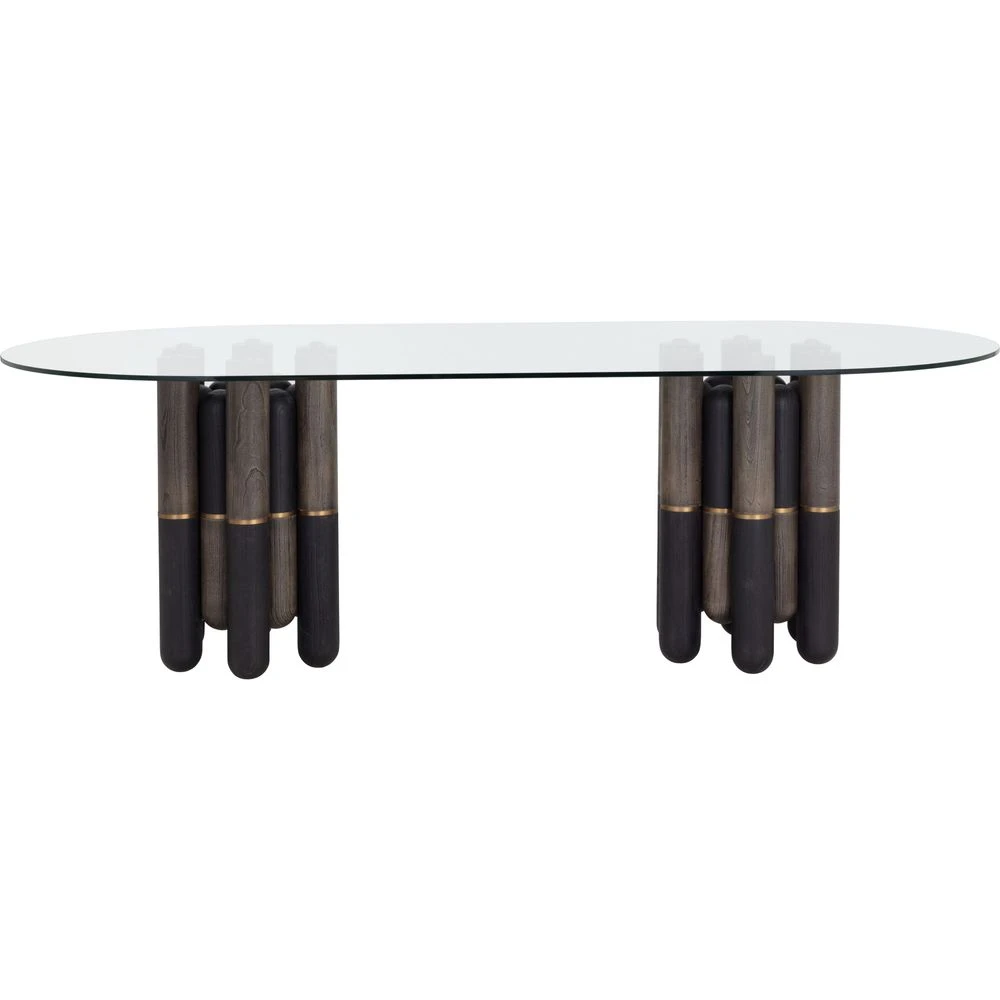 Description: Infuse a playful sense of character into your dining room with the Yanna Dining Table. A trio of mixed materials consisting of glass, and black and brown solid mindi wood with stainless steel accents enliven this eclectic design.
