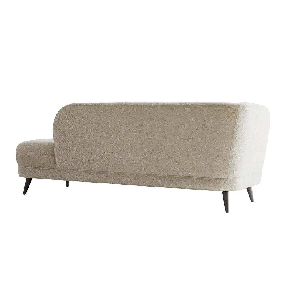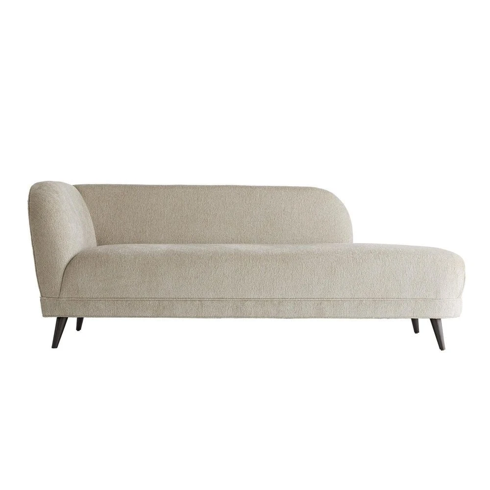It’s in the details that make the Gorica chaise a lounging beauty. It is designed in a modern way, but softened with rolling curves, rounded angles and an extra plush seat. Up close, observe all the immaculate details, like corner pleating, self welting and grey ash finished tapered legs. Upholstered with a textural boucle in a soft shade of pale gray, this hue complements a palette of almost any range.