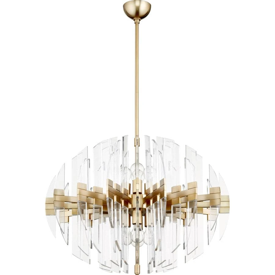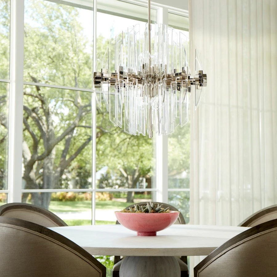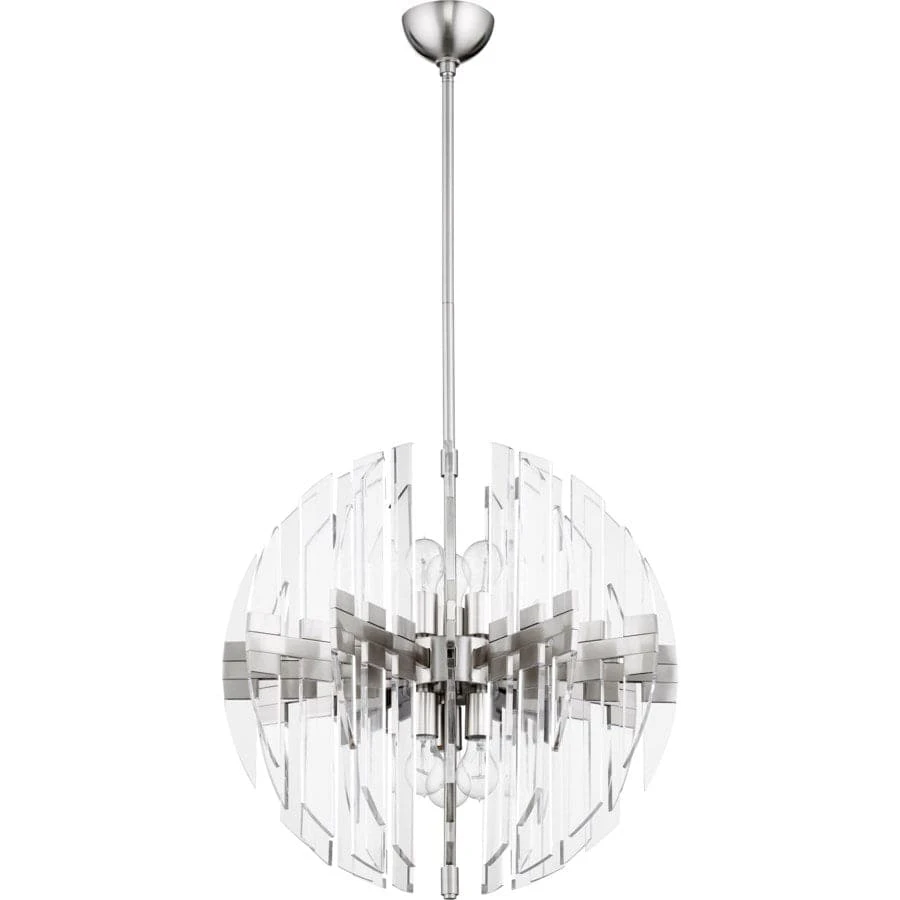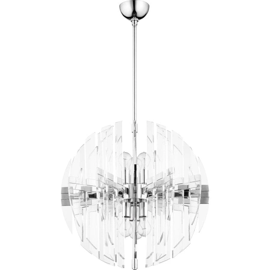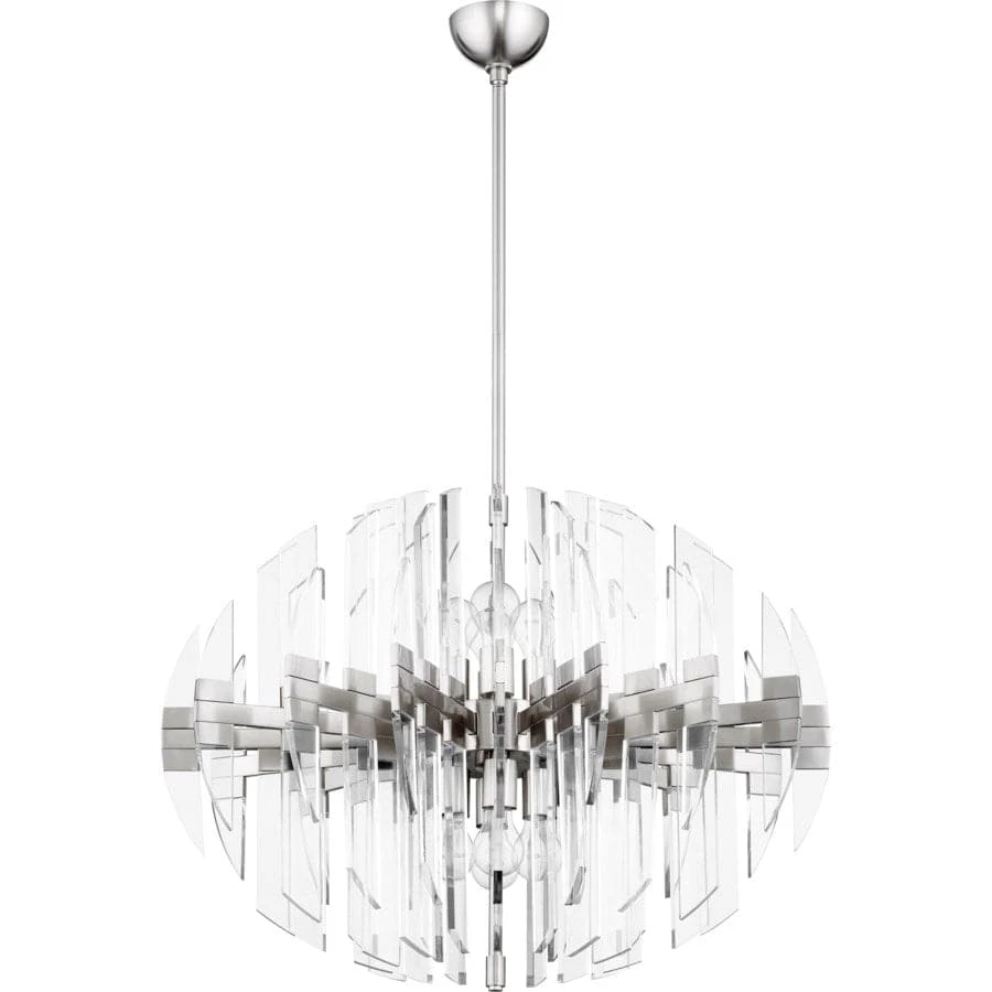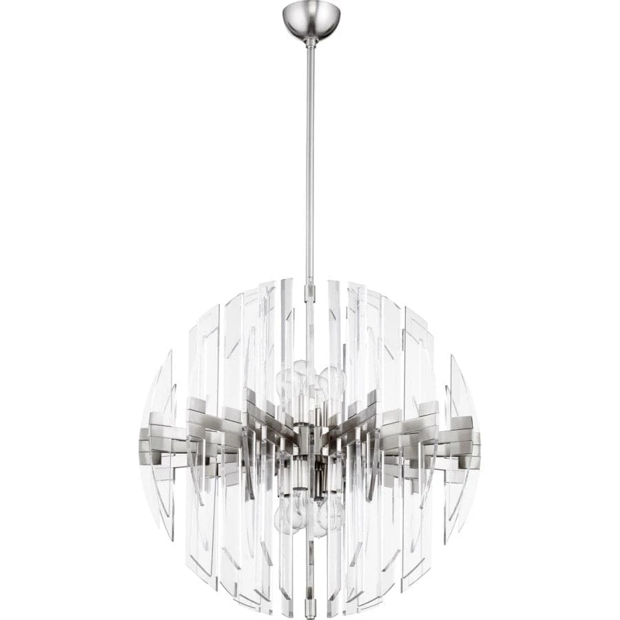 The sleek and futuristic Zion Pendant. Available in three size and three finish options (Aged Brass, Satin Nickel, & Polished Nickel), this fixture is ultra modern but thanks to its transparent design it also serves as the perfect transitional accent to any type of style. This acyrlic luminary is the perfect complement to any Modern, Minimal, or Mid-Century Modern entry or dining room application.