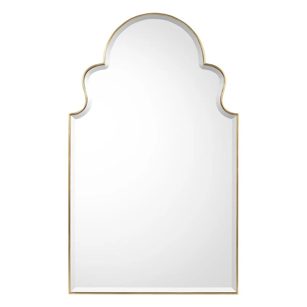Description: With influences of Moorish architecture a delicate cockbead molding traces the curves and lines of the inset bevelled modern mirror.